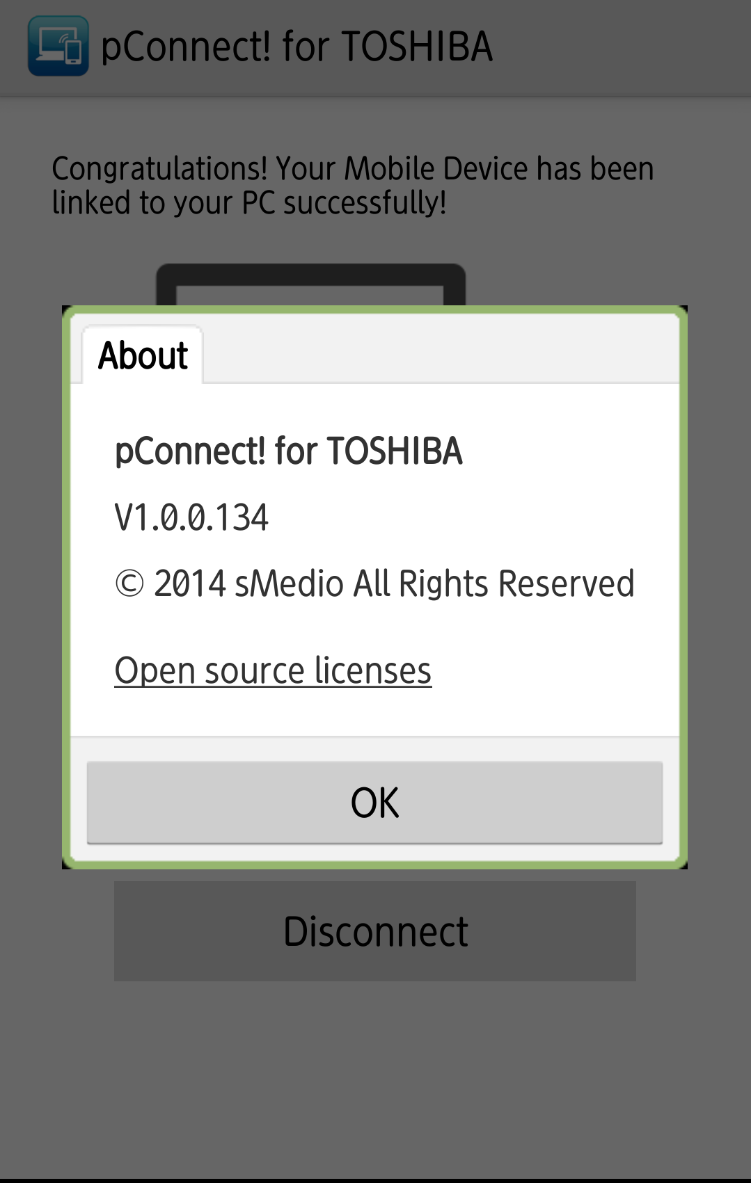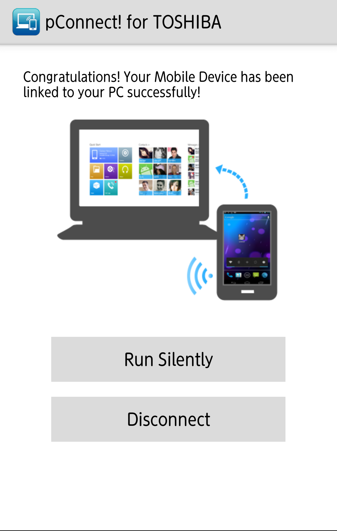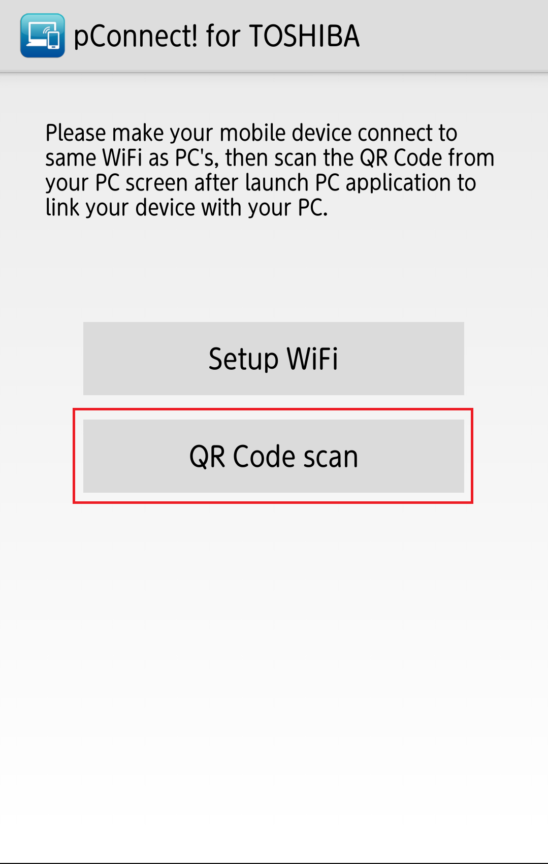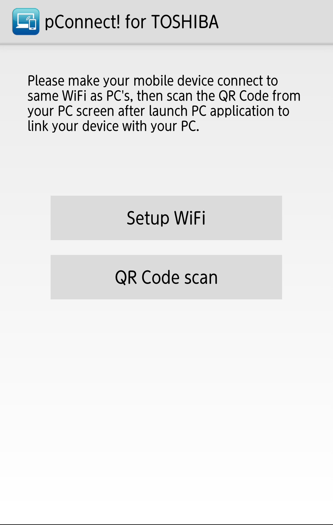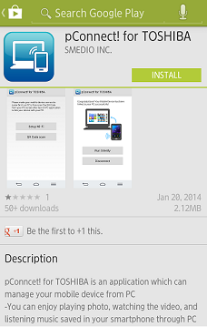 In order to use pConnect! for TOSHIBA, you need to pair your smartphone with PC.