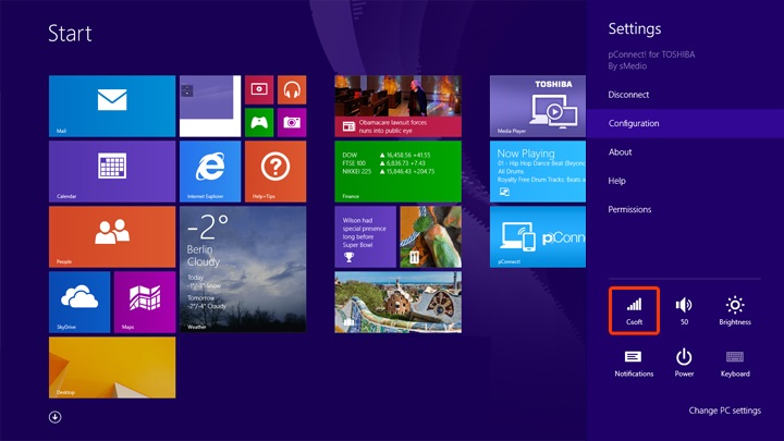 - Click/tap pConnect! for TOSHIBA on Start Screen. If pConnect! for TOSHIBA is not listed, click/tap All Apps.