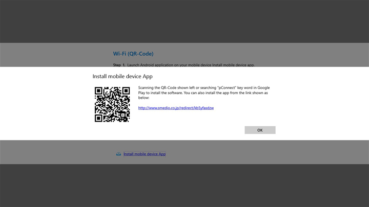 - By click/tap [install mobile device app], the link for Google Play will be displayed. By scanning QR code or entering url on smartphone, you will be forwarded to pConnect! install page on Google Play.