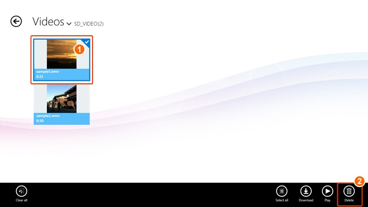 | ① | Right click on Video thumbnail(s) you want to delete. App bar will be displayed. |