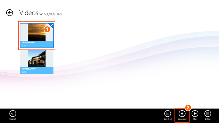 | ① | Right click on Video thumbnail(s) you want to download. App bar will be displayed. |