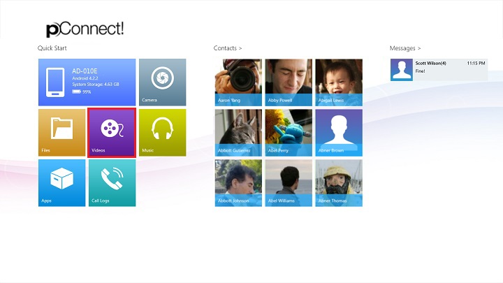 *pConnect! on the PC may display video and audio files in your smartphone even though these files cannot playback.