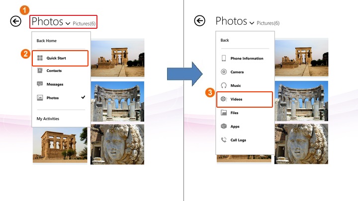 B. Click/tap “Videos” from Flyout menu of each contents
