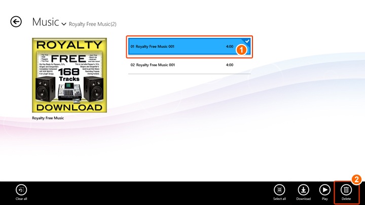 | ① | Right click musics you want to delete. App bar will be appeared. |