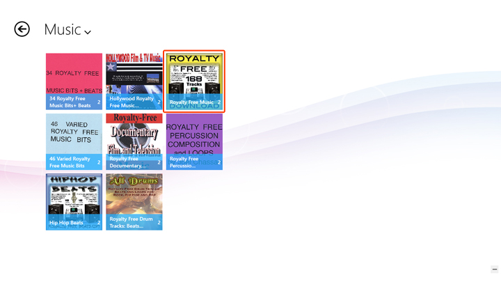B. Click/tap Music from Flyout menu of each contents