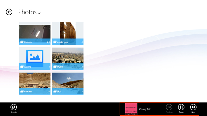 Below images show browse music folder from Photos Flyout menu.