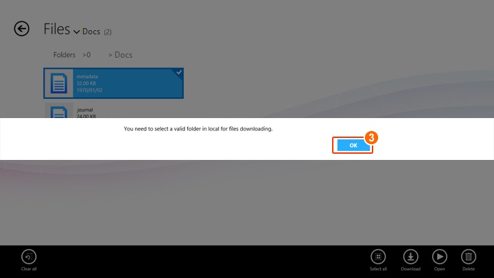 Note: For the first download, you will be asked to setup file download folder. Files except Photo, Video, and Music will be saved to the file download path.