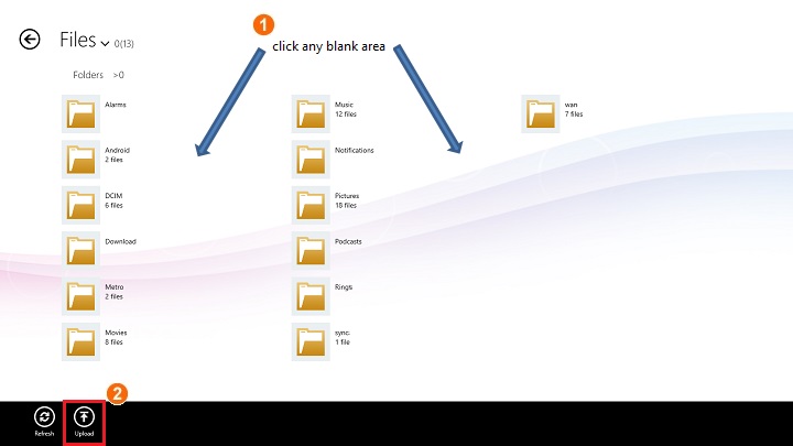 You can upload files from PC to your smartphone on Files page by following steps below.