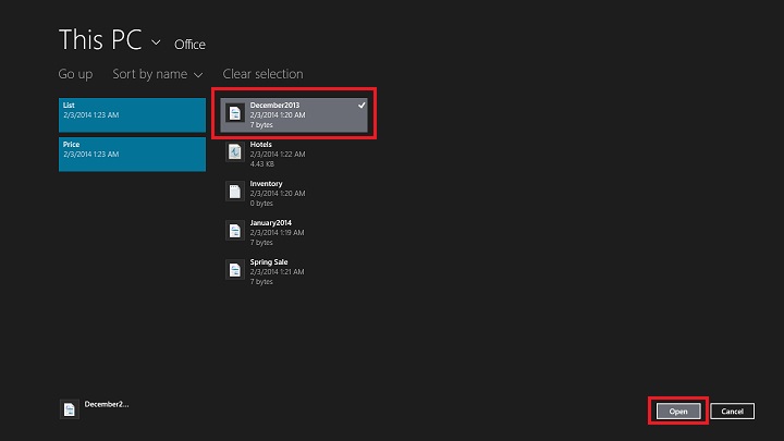 2. Select files then click/tap "Open" on App bar to open the file. By click/tap "Delete" the file will be deleted.