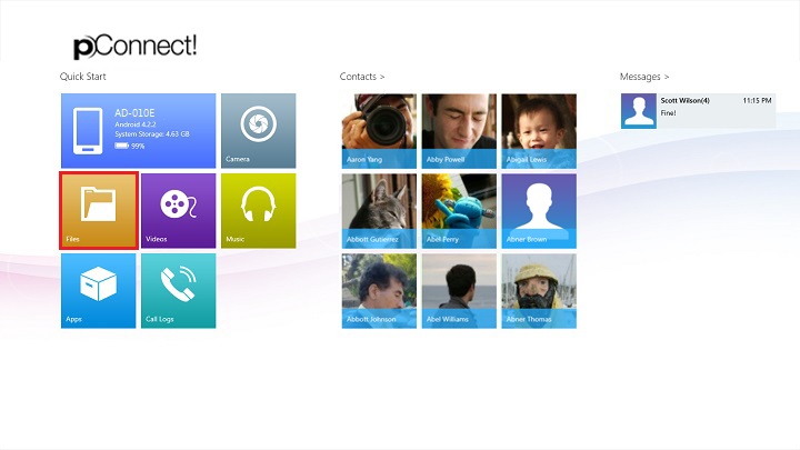 With pConnect!, you can Open Files in your smartphone, download to your PC, and upload to your smartphone.