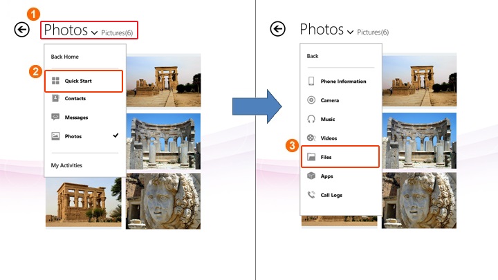 Upload: Upload selected files to smartphone. Please refer [Uploads Files]. |
