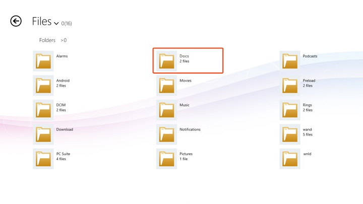 1. Select file folder in Files page. This page shows all files & folders in Internal and External SD card.