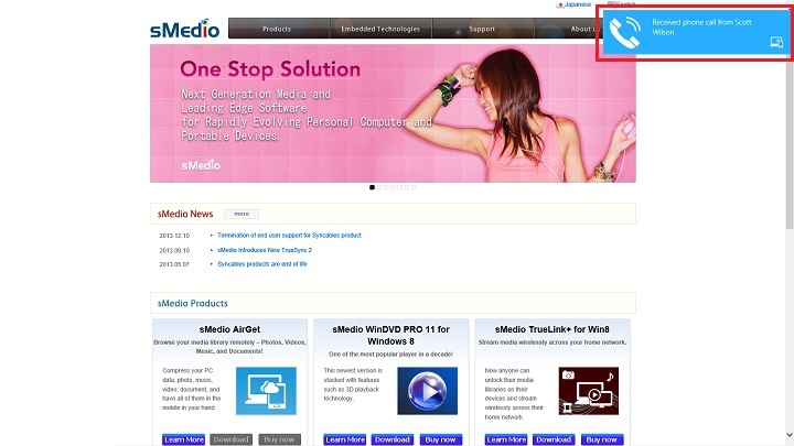 If PC application is running in background, incoming call toast message will be displayed. By clicking the toast message, the incoming call dialog will be displayed.