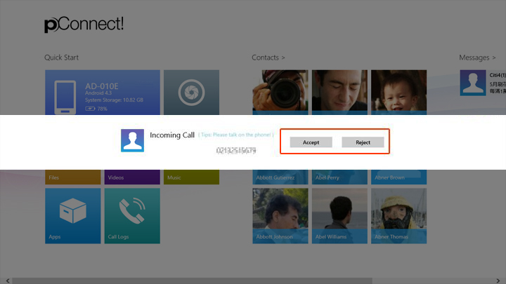 Under the condition that the Hands-free Profile of TOSHIBA Bluetooth Software is enabled, pConnect! will disable Incoming Call Toast message, while allowing Incoming Message Toast.
