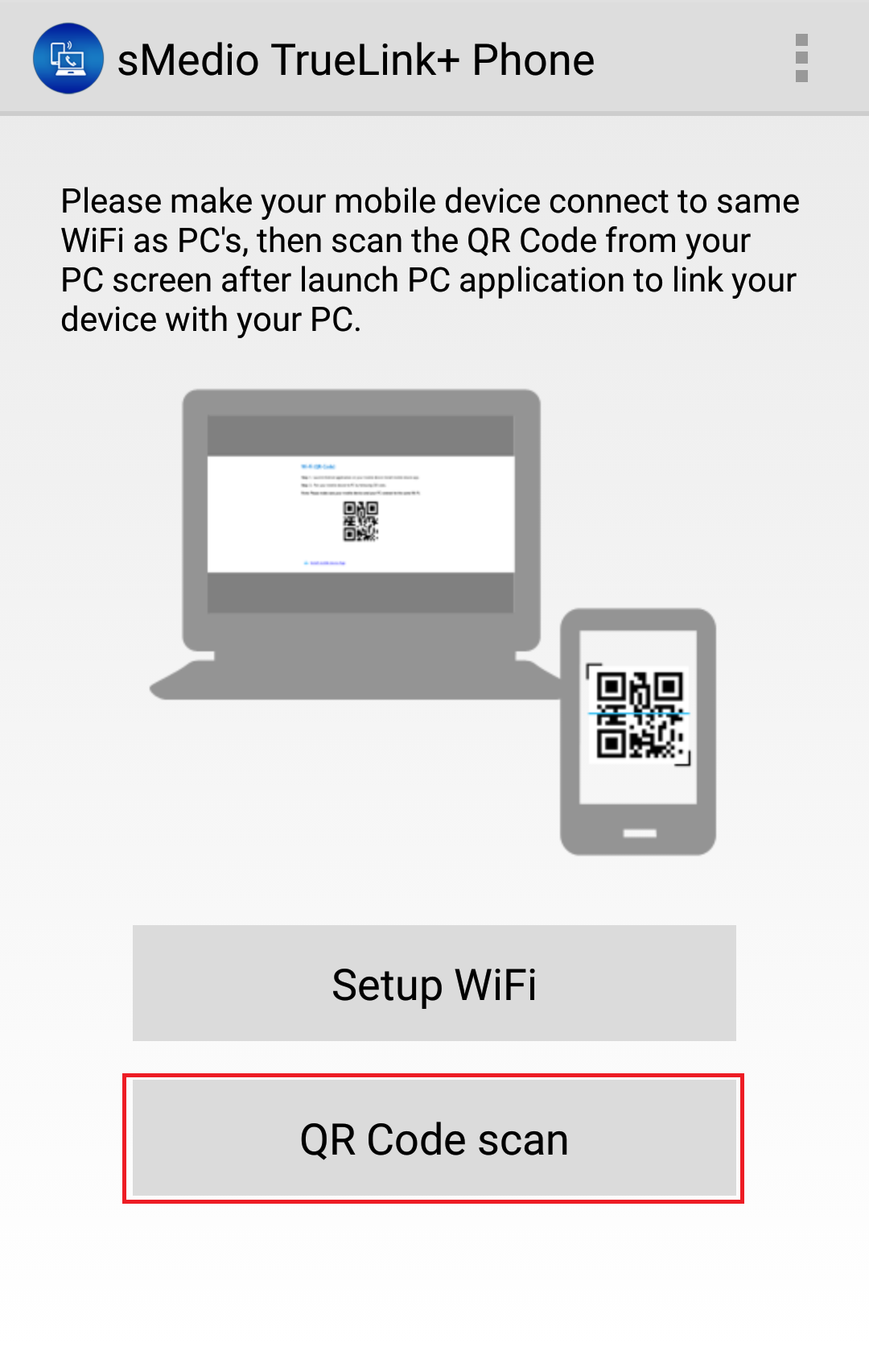 Tap "QR Code scan" on smartphone, then scan QR code on PC.
