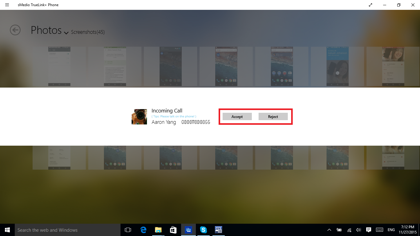 When you receive an incoming call while PC application is running in foreground, the incoming call dialog will be displayed.